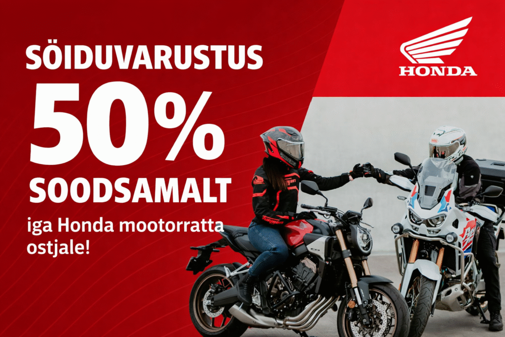 Nüüdsest igale Honda tsikli või ATV ostjale sõiduvarustus -50% / Uncategorized pakkumine kehtib koos sõidukiga 1-2 komplekti sõiduvarustuse ostul Motohoovi poest.